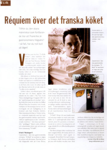 tipo de artículo: Publicidad idioma: Otros idiomas fecha: 06/10/2003 protagonista: elBullirestaurante medio: KONFERENS VÄRLDEN (Stockholm) página del artículo: 36