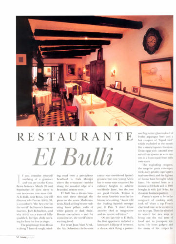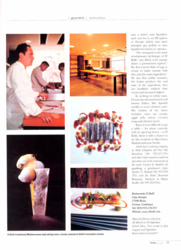 tipo de artículo: Reportaje idioma: Inglés fecha: 01/09/2001 protagonista: elBullirestaurante medio: Luxury (Palma de Mallorca) página del artículo: 52