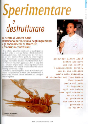 Le ricette di Albert Adrià affascinano per lo studio degli ingredienti e gli abbinamenti di strutture e condizioni contrastanti.