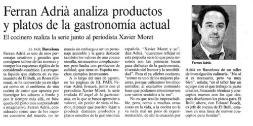 E cocinero realiza la serie junto al preriodista Xavier Moret.