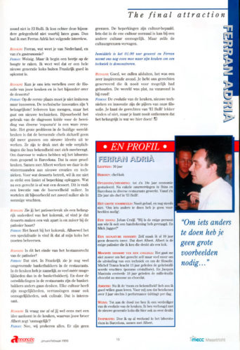 Al eens gehoord van Ferran Adrià?. Of van zijn restaurant El Bulli in Rosas aan de Costa Brava in Spanje?. Wie heeft er al eens in dit spraakmakende ***- restaurant gegeten?. Heeft iemand de grote innovator Ferran Adrià al eens ontmoet in zijn onbeschri