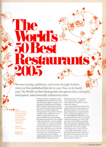 We were young, ambitious, and some thought foolish, when we first published this list in 2002. Now in its fourth year, The World’s 50 Best Restaurants has grown into a hungrily anticipated, internationally influential event.