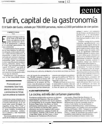 artículo: TURÍN, CAPITAL DE LA GASTRONOMÍA. EL III SALÓN DEL GUSTO.