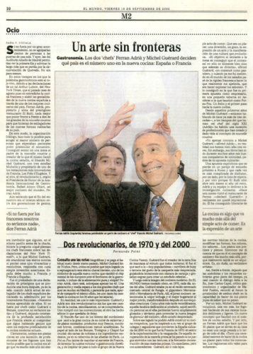 Los dos Chefs Ferran Adrià y Michel Guérard deciden qué país es el número uno en la nueva cocina: España o Francia.