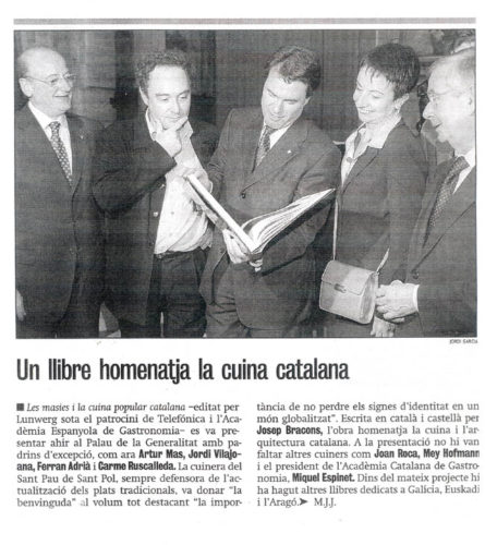 Les masies i la cuina popular catalan – editat per Lunwegr sota el patrocini de Telefónica i l’Acadèmia Espanyola de Gastronomia – es va presentar ahir al Palau de la Generalitat amb padrins d’excepció.