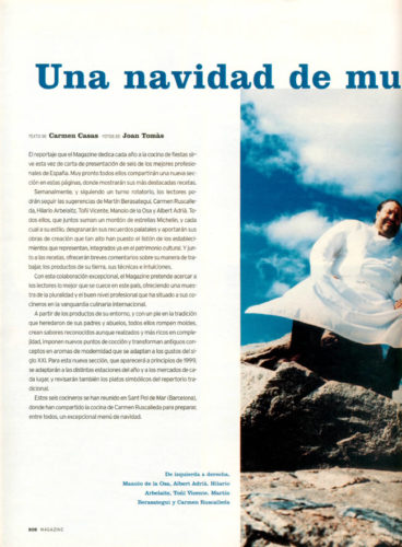 tipo de artículo: Receta idioma: Castellano fecha: 13/12/1998 protagonista: Albert Adrià medio: LA VANGUARDIA MAGAZINE (Barcelona) página del artículo: 202