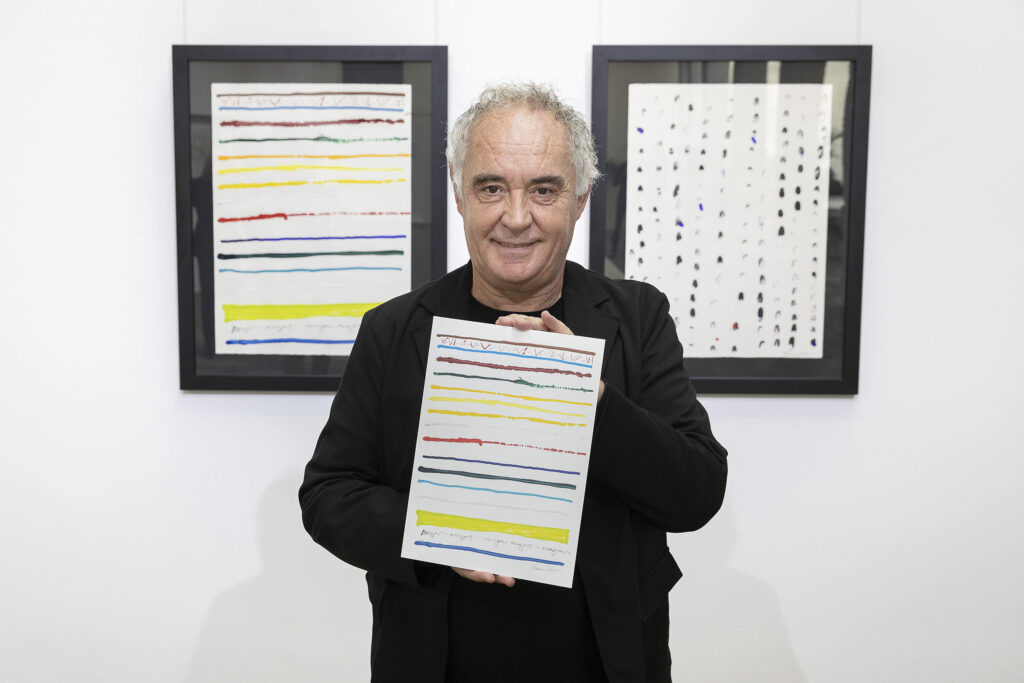 A través del dibujo —herramienta habitual en su proceso creativo— Adrià propone una reflexión sobre la comida y la bebida, explorando los orígenes de la cocina y reinterpretando algunos de los platos icónicos de elBulli.
